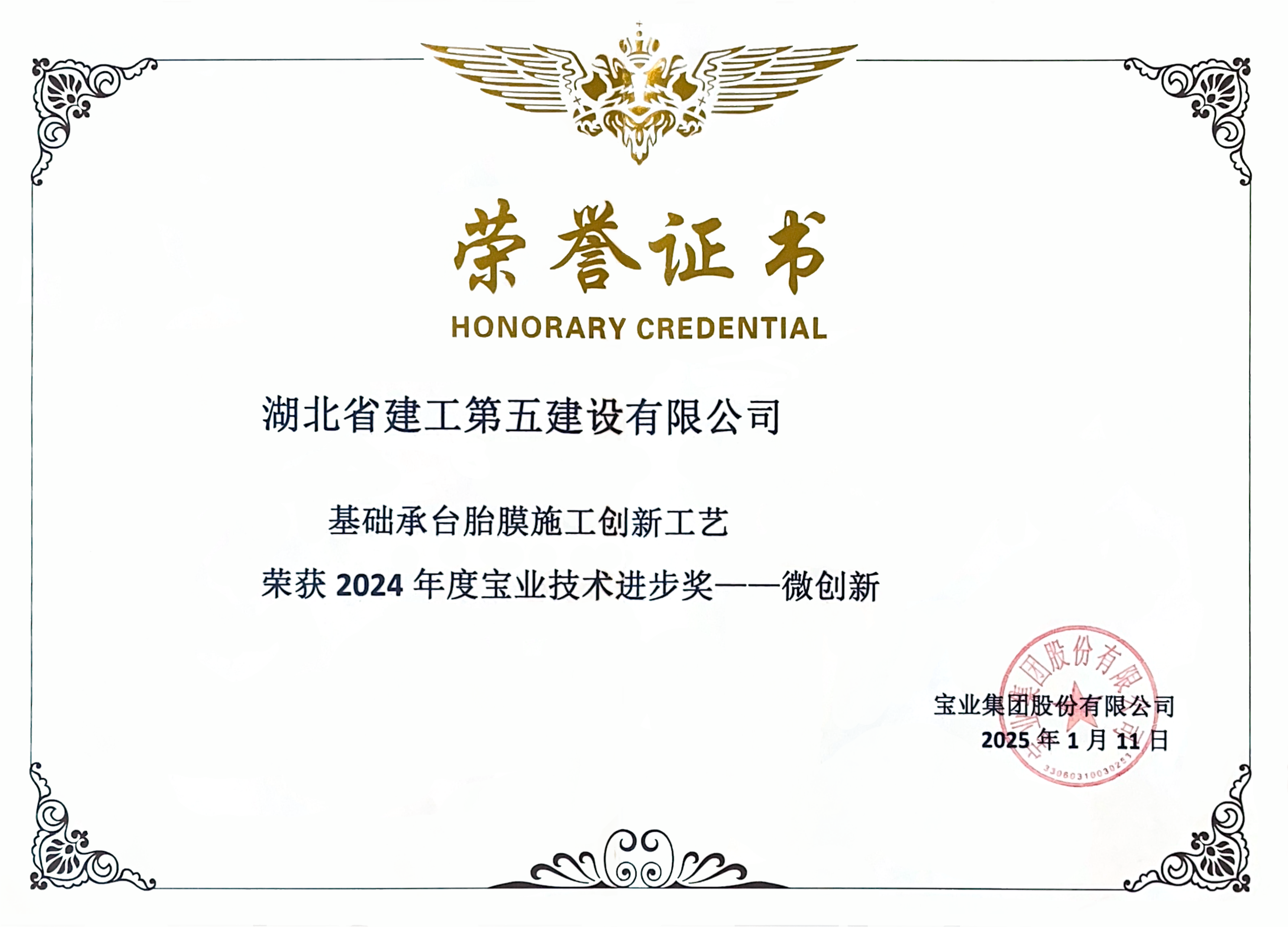 - 2025-01-16湖北省建工第五建設有限公司榮獲寶業集團2024年度寶業技術進步獎微創新獎...[圖]